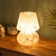Enhance the ambience of your living space with the elegant Confetti Glass Table Lamp. This modern lamp features a sleek design with a tapered lampshade and is crafted from high-quality glass, offering both style and durability. Whether placed on bedside tables, in bedrooms, or in living rooms, this lamp illuminates your space with warm white light, creating a cosy and inviting atmosphere.
